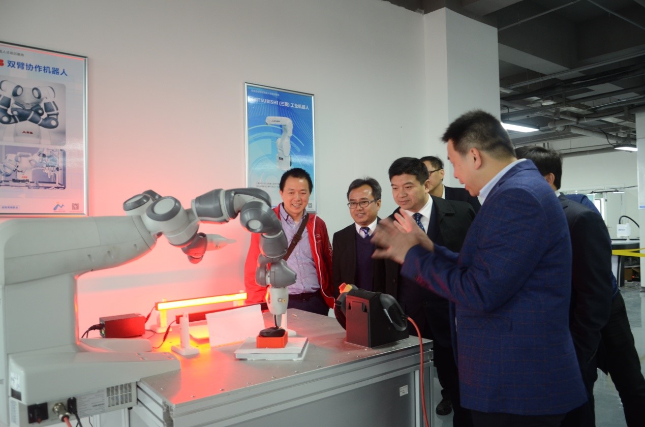 会议正式开始前,与会嘉宾参观了湖南连硕智能制造人才基地。基地由上市公司海伦哲(股票代码:300201)全资子公司连硕教育投入3000万元创建,专注以机器人为核心的智能制造人才培养,立足湖南,面向全国,服务中国制造。