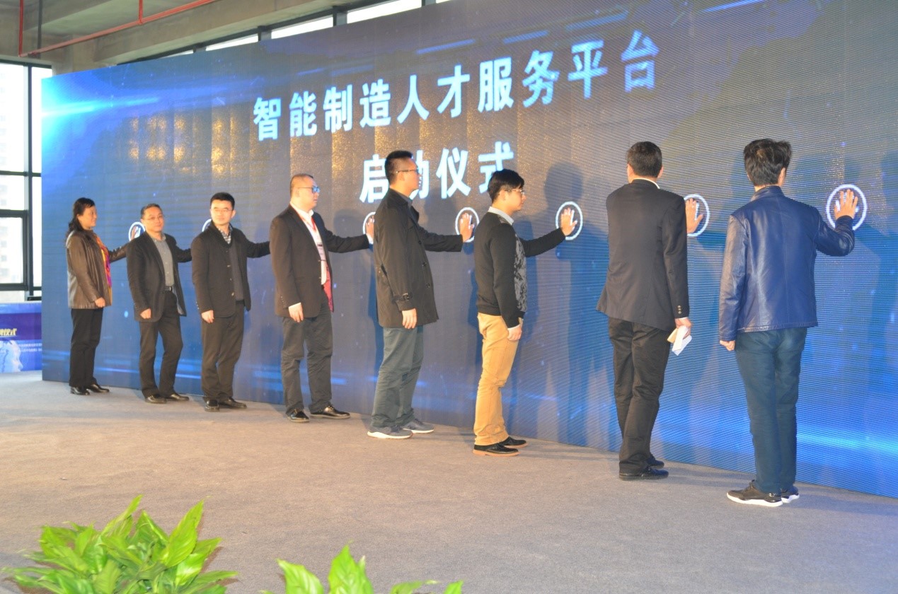 此外,会议还进行了智能制造人才服务平台的启动仪式,人社厅、教育厅等领导和ABB、Fanuc(发那科)、Yaskawa(安川)等机器人厂家负责人上台共同启动。