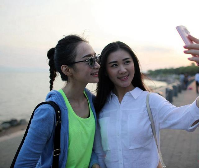 09、休息日的下午,刘苗苗和同事来到深圳湾公园看海聊天,与其他年轻人一样,她们也喜欢自拍。