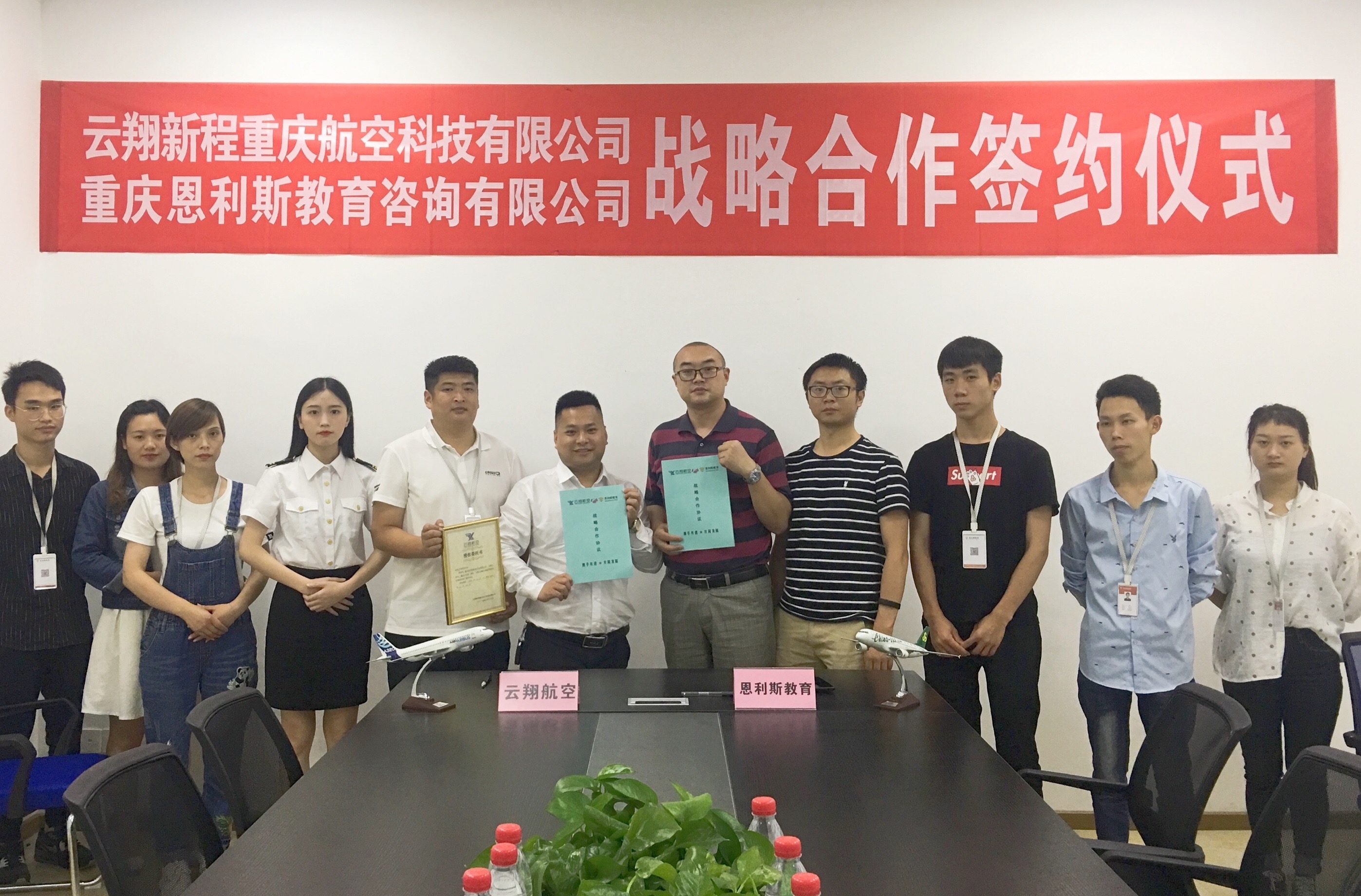 2019年6月17日,云翔航空与恩利斯教育战略合作签约仪式在大学城金科廊桥举行。云翔航空副总彭春、恩利斯教育总经理贺梅军以及双方相关部门负责人等参加签约仪式,会议上,彭春和贺梅军代表双方公司签署两司战略合作协议。