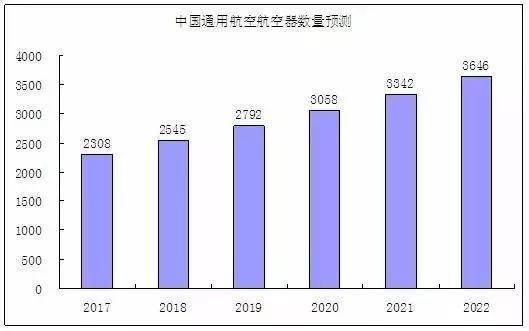 预计2017-2022年我国通用航空飞行器数量继续高速增长,到2022年飞行器数量将达到3646架,年增长率在10%左右。
