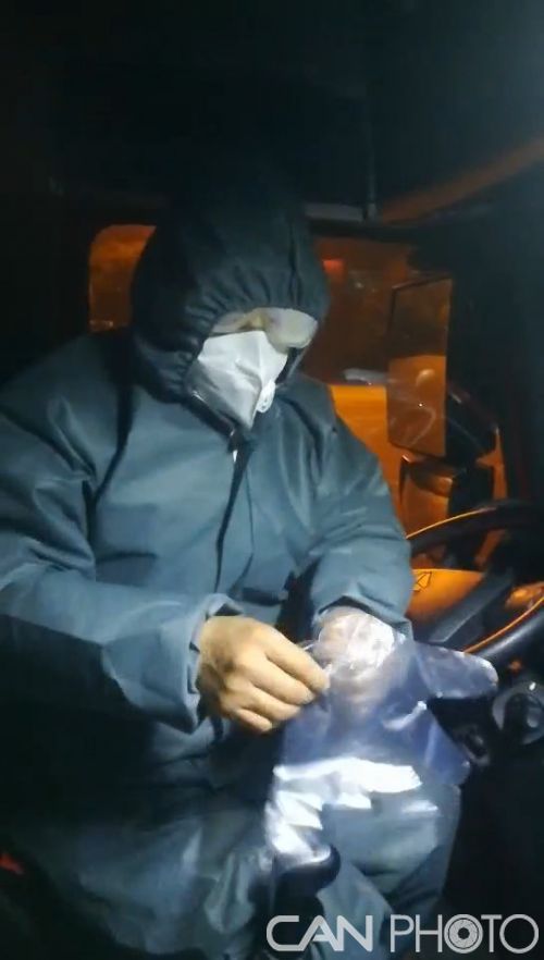 直到夜里22点才卸完货,在这14个小时内,杨春良、鲁邦春一直呆在车厢里,车窗仅留了一道缝隙进行通风,简简单单吃了点干粮,“水不敢多喝,怕喝多了上厕所。”两人隔着车窗看着现场的施工情况,每隔一个小时就拍一段视频发给公司和家人,告诉他们一切正常。