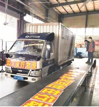 美东华人社团联合总会捐赠的物资运抵国内,正在装车前往武汉。