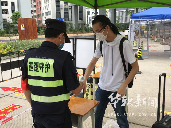 学生接受宿管门岗核对信息