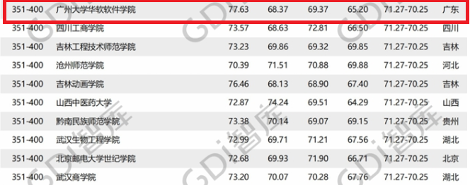 2020广州日报应用大学排行榜—TOP800排行榜,我院排名351-400