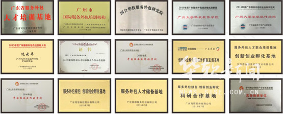 2015年11月成立了 “服务外包研究院”,2016年被认定为广州市、广东省服务外包人才培训基地,先后获得等各级财政专项 资助奖励13项近500余万元