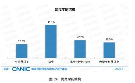 4月28日,深海教育根据中国互联网络信息中心(CNNIC)发布的第45次《中国互联网络发展状况统计报告》获悉,截至2020年3月,我国网民规模为9.04亿,80.5%的网民学历是大专以下,6.5亿网民月收入不足5000元。