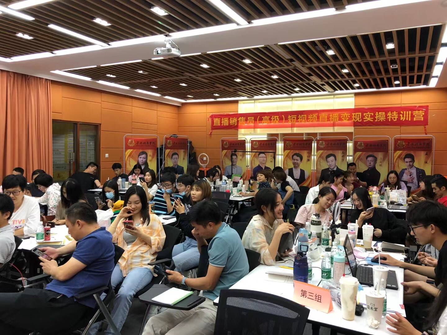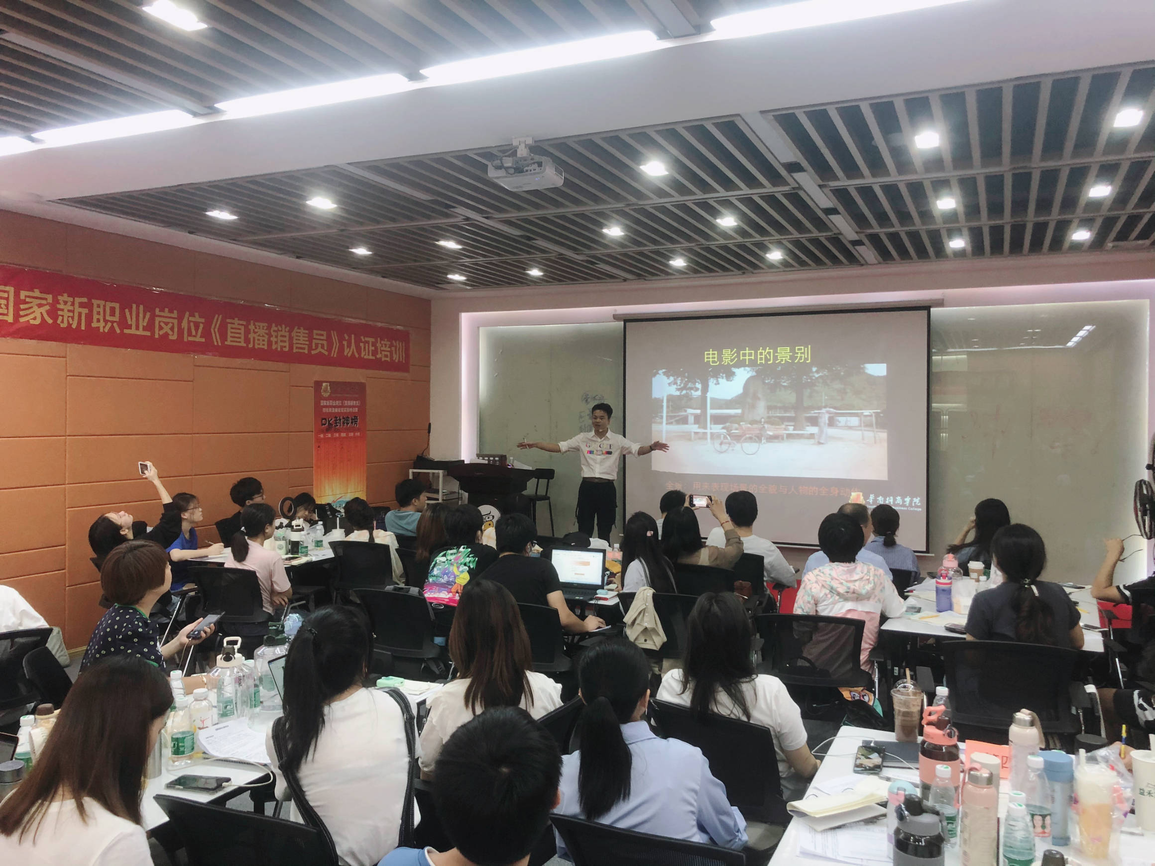 2021年7月16日一早,华南网红孵化基地如往日一样热闹非凡,又迎来了一批来自全国各地的49位主播大咖和短视频直播爱好者,开启了为期三天二夜的线下短视+直播实操特训。学员通过线上15天的国家新职业岗位培训官网的教材学习和线下3天2夜实操特训,考试毕业,即可获得人社部和国家三部委颁布的新职业技能直播销售员证书