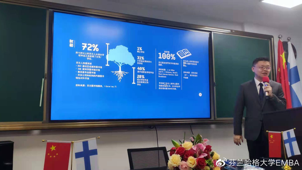 首先,由哈格大学中国运营中心国际项目学术部主任熊老师致辞欢迎。随后熊老师针对芬兰国家的教育、经济、文化、政治等方面进行了详尽的介绍。