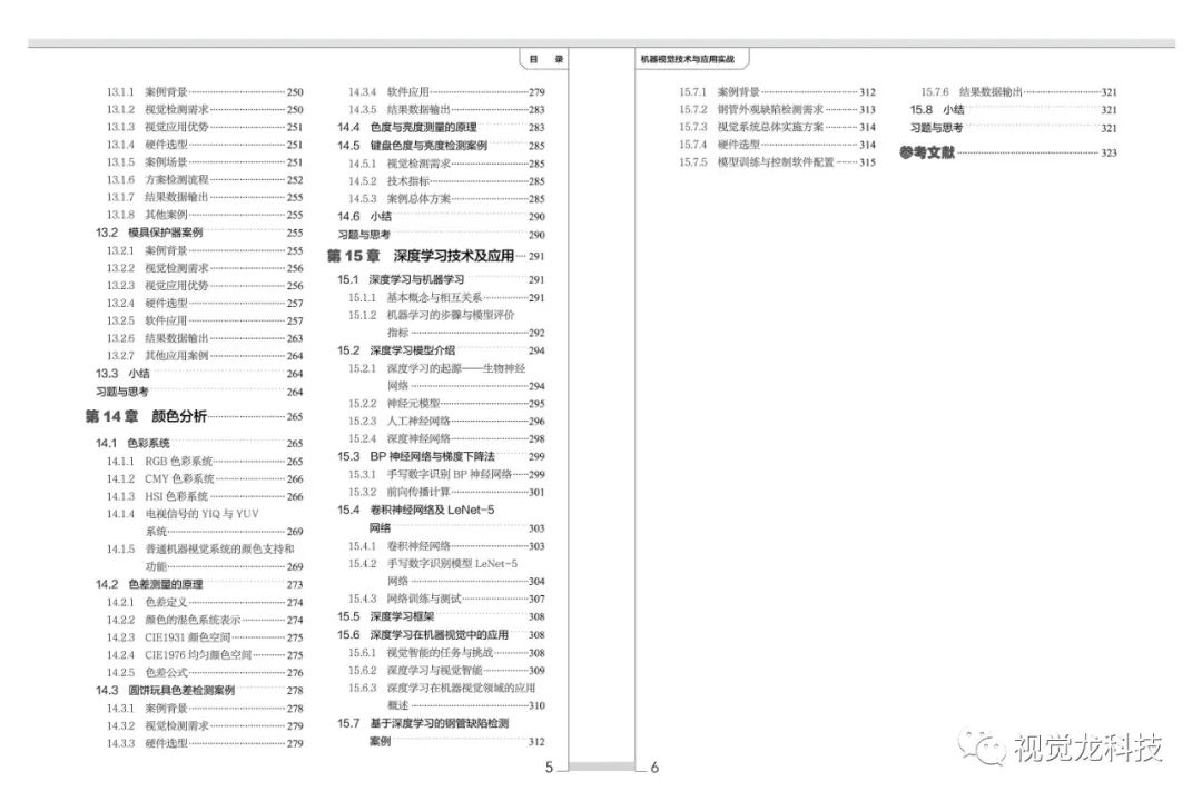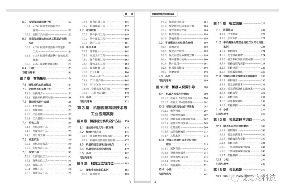 本书从机器视觉的基本概念到算法,从机器视觉核心部件到可配置的嵌入式视觉系统,从2D视觉到3D视觉技术,从黑白到彩色视觉技术,从传统视觉到深度学习技术,从视觉系统设计到各行业的应用场景,从视觉检测、测量、定位、读码与识别四大需求到实际应用案例都分别进行了详细讲解。