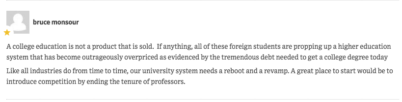 也有人觉得其实中国人根本就不需要到美国留学,限制他们只会让大学财政出问题。