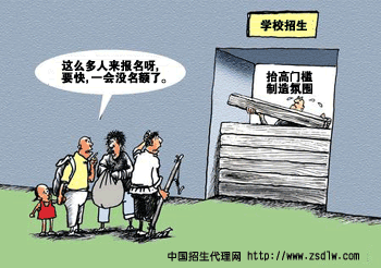 运用人众心理,哪些门槛人气旺,就抬高。一些盲目的抬高性质反而会让家长产生恐惧感,盲目感,家长必然会认为学校好才会吸引更多人,值得孩子入学。提高门槛要巧,把握度,抬的过高可能吓跑一批家长,抬的太低,可能会被指作秀,没有达到目的。门槛要设置的巧,不能要家长看出倪端,认为故弄玄虚,弄巧成拙,适得其反。门槛设置一定要在人多的情况下,让家长认定现在不报名以后就没机会了,制造人多人闹的氛围,最好先有一些活动宣传。